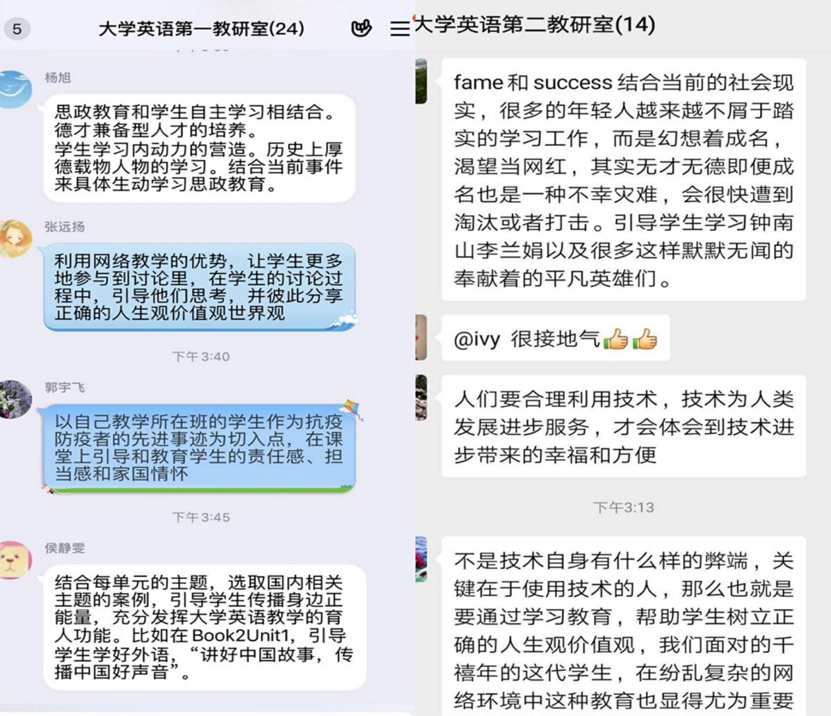 (大学英语教研室会议交流截图)