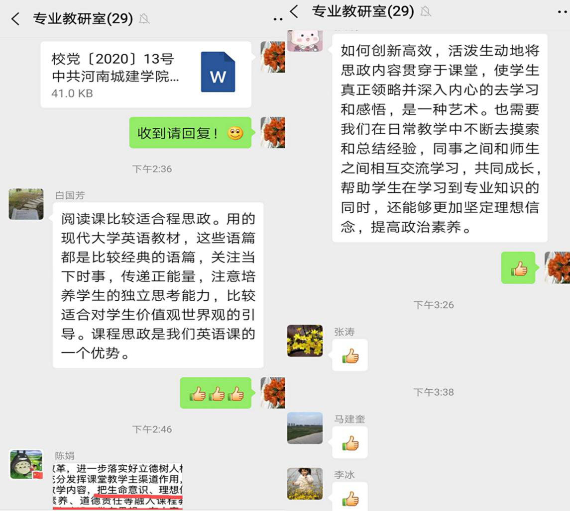(英语、翻译专业教研室会议交流截图)