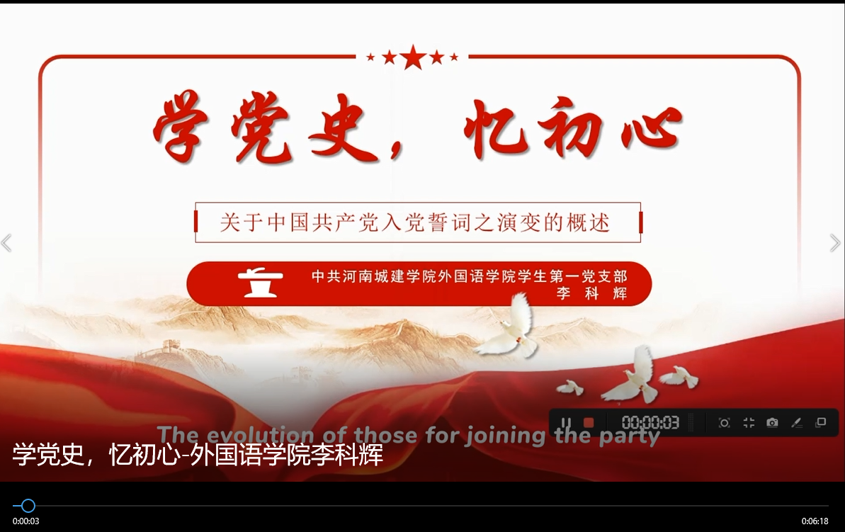 (员工一支部党员李科辉用英语讲述入党誓词的演变)