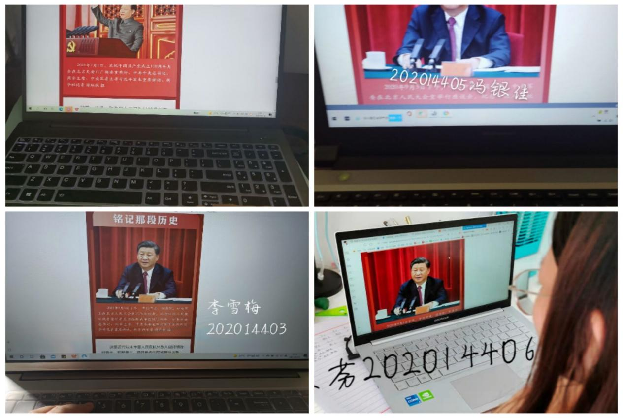 (1314201团支部成员们观看视频学习习近平“七一”讲话精神)