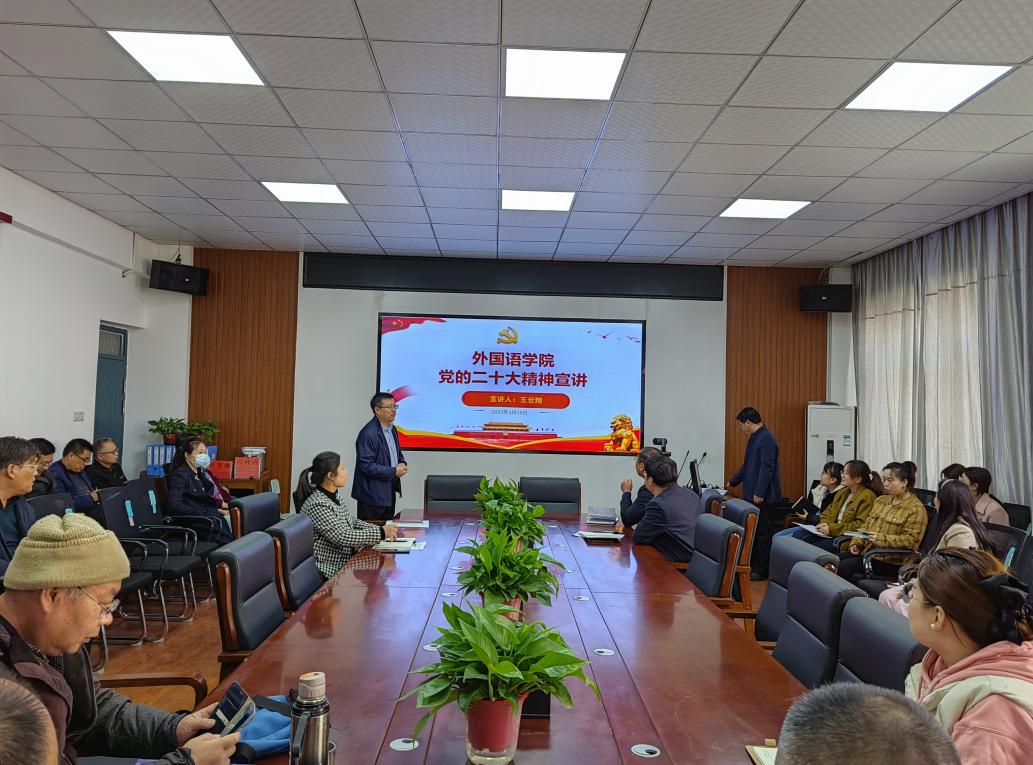 (通讯员罗孟阳)为深入学习宣传贯彻党的二十大精神,引导全院师生把思想和行动统一到大会精神上来,3月28日下午,太阳成集团tyc122cc在和谐校区一号楼306会议室开展党的二十大精神宣讲会,马克思主义公司党总支书记王世翔应邀为公司教师开展宣讲活动,公司党委书记王东旭主持,全体教职工参会。