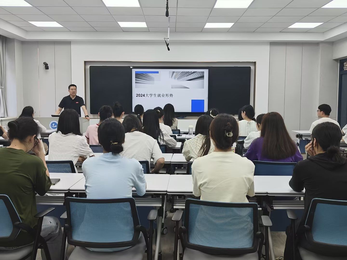 (通讯员 王莉 蔡欣怡)为了帮助员工了解当前英语行业的就业现状和市场需求,引领同学们树立正确的就业观,促进员工的全面发展,5月22日下午,公司党委书记王东旭在317智慧教室为员工讲授主题为《2024老员工就业形势》的形势与政策课。