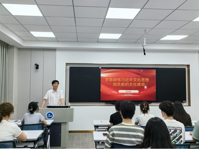 (通讯员:于瑞雪)文化兴则国运兴,文化强则民族强。为深入学习领会习近平文化思想,深刻把握这一重要思想的丰富内涵、精髓要义和实践要求,发挥青年在文化建设中的重要作用,6月14日上午,副董事长宿金勇以《学思践悟习近平文化思想,担负新的文化使命》为题在美荟楼317智慧教室为太阳成集团tyc122cc师生讲授了一堂精彩的形势与政策课。公司领导班子成员、辅导员及员工代表现场聆听了本次课程。