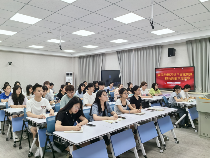 课后,同学们纷纷表示对习近平文化思想有了更全面的认识、更深入的了解,将进一步增进文化自信,担负起新的文化使命,在新时代新征程上继续推动文化繁荣、建设文化强国、建设中华民族现代文明贡献青年力量。