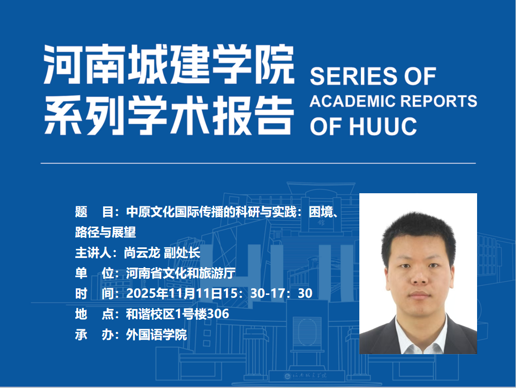 河南省文化和旅游厅公共服务处副处长尚云龙应邀为公司师生作学术报告,现将有关事项通知如下:
