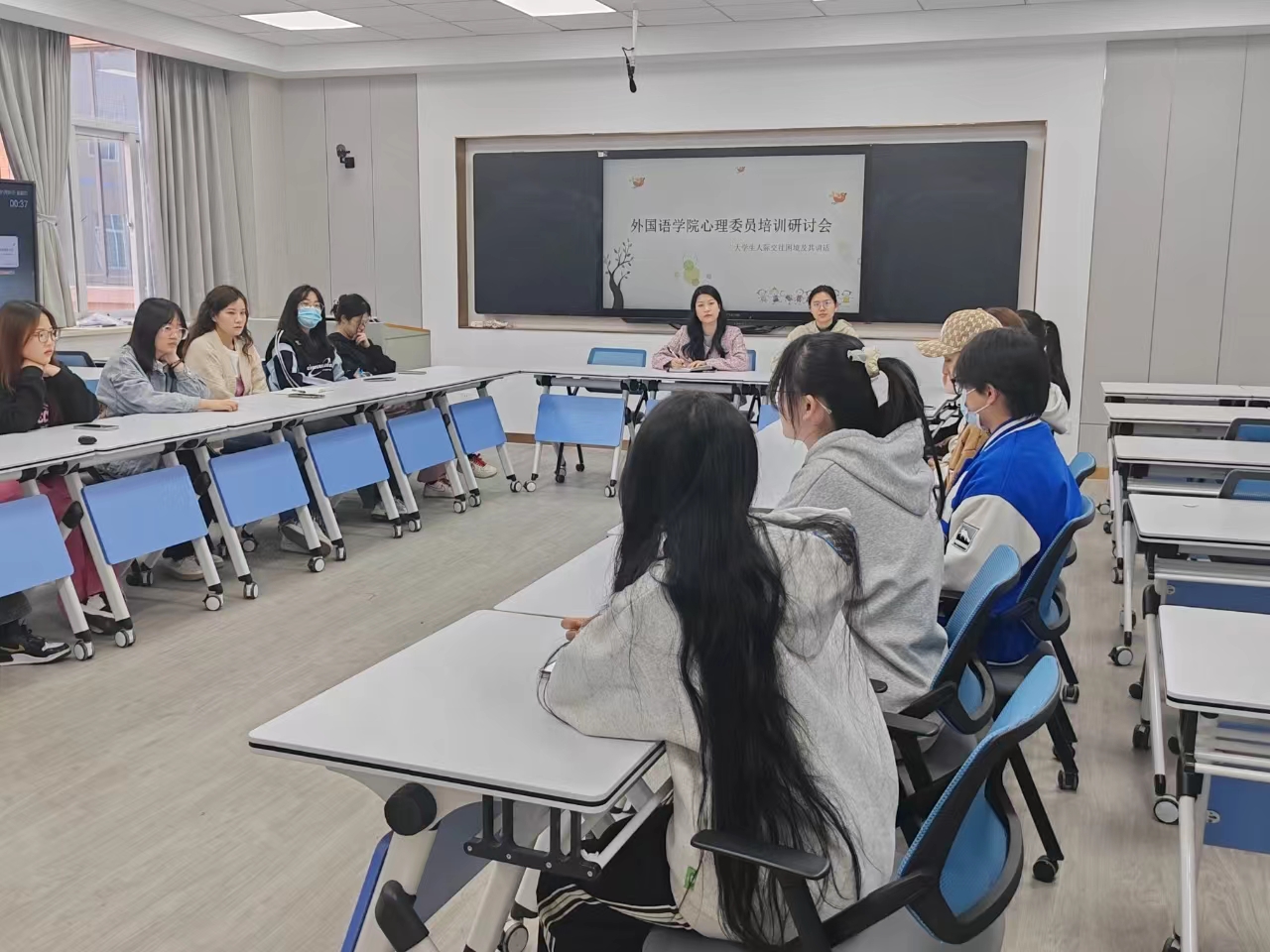 研讨会上,每一位心理委员首先根据本班的情况介绍班级内同学们之间相处的模式及遇到的问题,其次,将自己作为班级心理委员遇到同学们出现人际交往困境时采取的措施进行分享。在交流环节,心理委员们也深入探讨了如何更好地促进班级同学融洽相处、提高同学们的心理调适能力。最后,大家还对心理委员在工作中可能遇到的问题进行了剖析,对问题的不同情况提出了相应的解决措施。