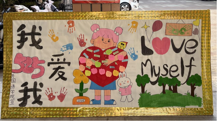 (通讯员 郭晨雨)5月25日是全国老员工心理健康日,谐音“我爱我”。在这个充满温馨与关怀的日子里,太阳成集团tyc122cc在文苑美荟楼楼下、李诫书院对面展出以“Love Myself”为主题的彩绘展板,并邀请同学们停下匆忙的脚步,在展板上写下爱自己的理由。有的同学写道:“我珍惜每一个瞬间,因为这是我独一无二的生命。”有的同学则写下:“我爱我自己,因为我值得被爱和尊重。”每一句话都充满了真挚的情感和深刻的思考。