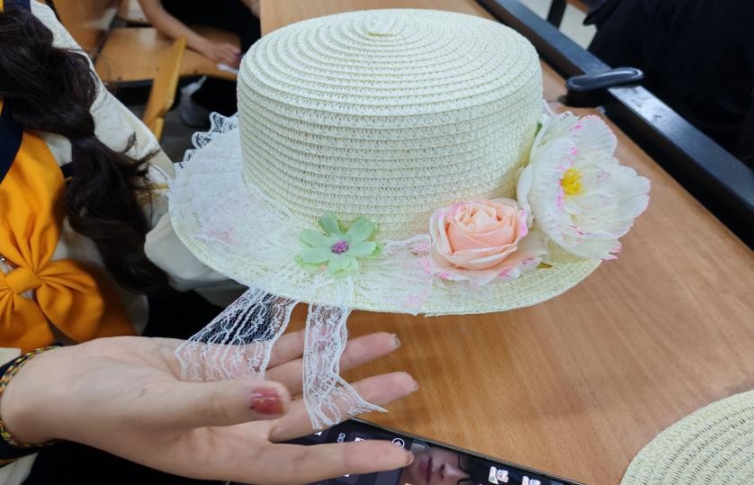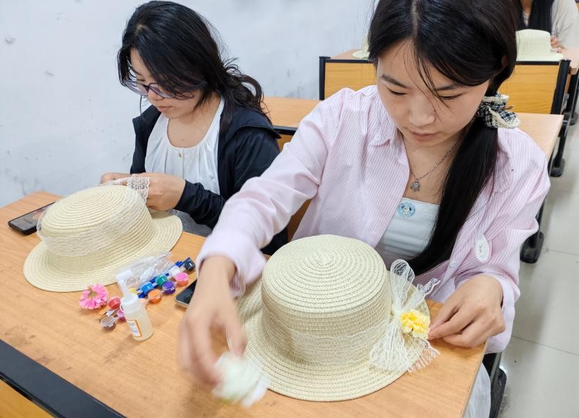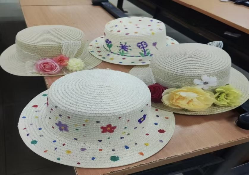 活动现场,心理部成员首先向同学们介绍了手作疗愈心灵的意义,鼓励大家通过亲手装饰、彩绘草帽表达自我、探索心灵。随后,同学们在草帽上开始了自己的创作之旅,选花、搭配、粘贴、绘画,并时不时和身边小伙伴分享灵感,互相欣赏作品,现场洋溢着轻松愉悦的氛围。创作结束后,大家手持自己独具特色的草帽,向其他同学展示自己的作品,并分享自己的创作灵感、选择花材的原因,以及制作过程中的心情和感受,不少同学表示,专注于装饰彩绘的过程让自己暂时忘却了学业压力,与同伴的交流互动也给自己带来了快乐。