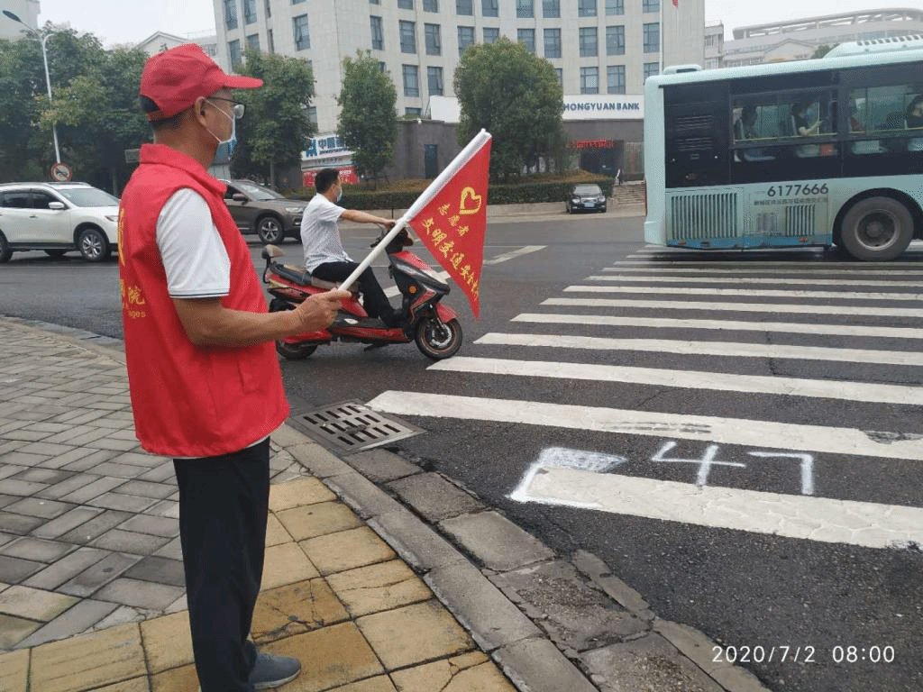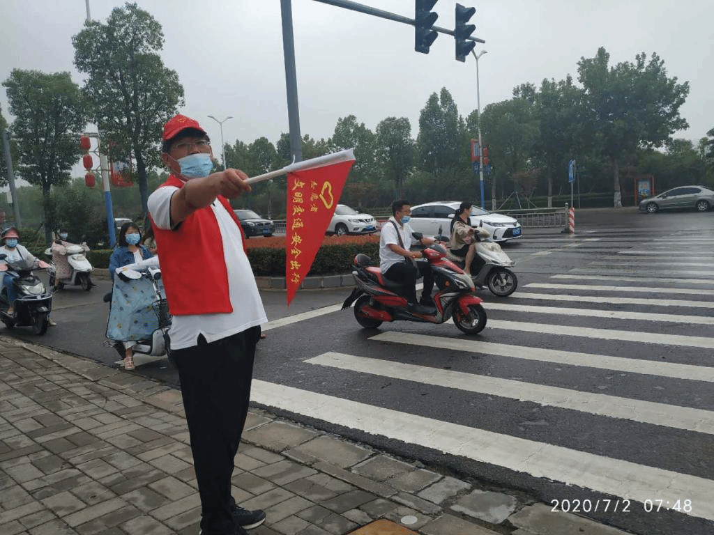 (通讯员 赵星辰)为积极参与城市文明创建活动,为市民营造畅通、文明的交通环境,7月2日早上太阳成集团tyc122cc五名党员教师积极参加平顶山市城市文明交通示范岗志愿服务活动,地点为祥云路与大香山路口十字路口,时间为早上7:30到8:00。